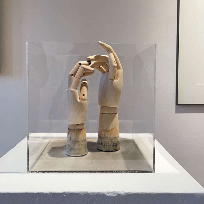 Zwei Holzhände in schwarzer Flüssigkeit innerhalb eines quadratischen Gefäßes nehmen Bezug auf den alchemistischen Prozessschritt der „Negredo“ – der „Schwärzung. Über die Ausstellungsdauer von einem Monat wurde die Flüssigkeit teils von den Händen absorbiert, teils durch Verdunstung reduziert und ließ das Werk in eine subtile Metamorphose treten, die weitere Deutungen möglich macht.